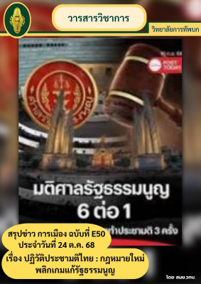 สมย.วทบ. ได้จัดทำสรุปข่าวการเมือง ฉบับ E50 ประจำวันที่ 24 ต.ค. 68 เรื่อง ปฏิวัติประชามติไทย : กฎหมายใหม่พลิกเกมแก้รัฐธรรมนูญ