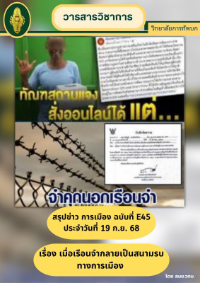 สรุปข่าวการเมือง ฉบับ E45 ประจำวันที่ 19 ก.ย. 68 เรื่อง เมื่อเรือนจำกลายเป็นสนามรบทางการเมือง