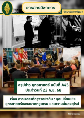 สรุปข่าวยุทธศาสตร์ ฉบับที่ A45 ประจำวันที่ 22 ก.ย. 68 เรื่อง การเจรจาที่กรุงวอชิงตัน: จุดเปลี่ยนเชิงยุทธศาสตร์ของอนาคตยูเครน และความมั่นคงยุโรป