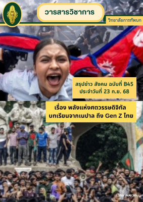สรุปข่าวสังคม ฉบับที่ B45 ประจำวันที่ 23 ก.ย. 68 เรื่อง พลังแห่งศตวรรษดิจิทัล บทเรียนจากเนปาลถึง Gen Z ไทย