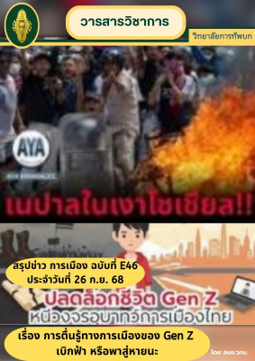 สรุปข่าวการเมือง ฉบับที่ E46 ประจำวันที่ 26 ก.ย. 68 เรื่อง การตื่นรู้ทางการเมืองของ Gen Z เบิกฟ้าหรือพาสู่หายนะ