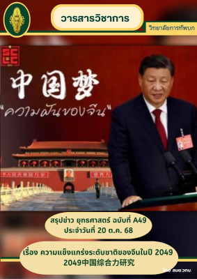 สมย.วทบ. ได้จัดทำสรุปข่าว ยุทธศาสตร์ ฉบับที่ A49 ประจำวันที่ 20 ต.ค. 68 เรื่อง ความแข็งแกร่งระดับชาติของจีนในปี 2049 2049中国综合力研究